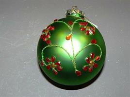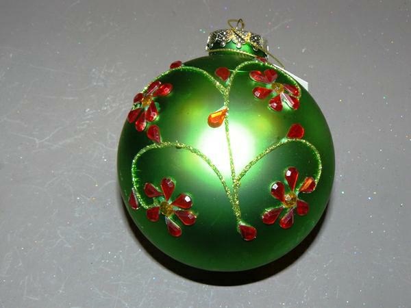 4 SFERE VETRO CM.10 VERDE DECORO VERDE E GEMME